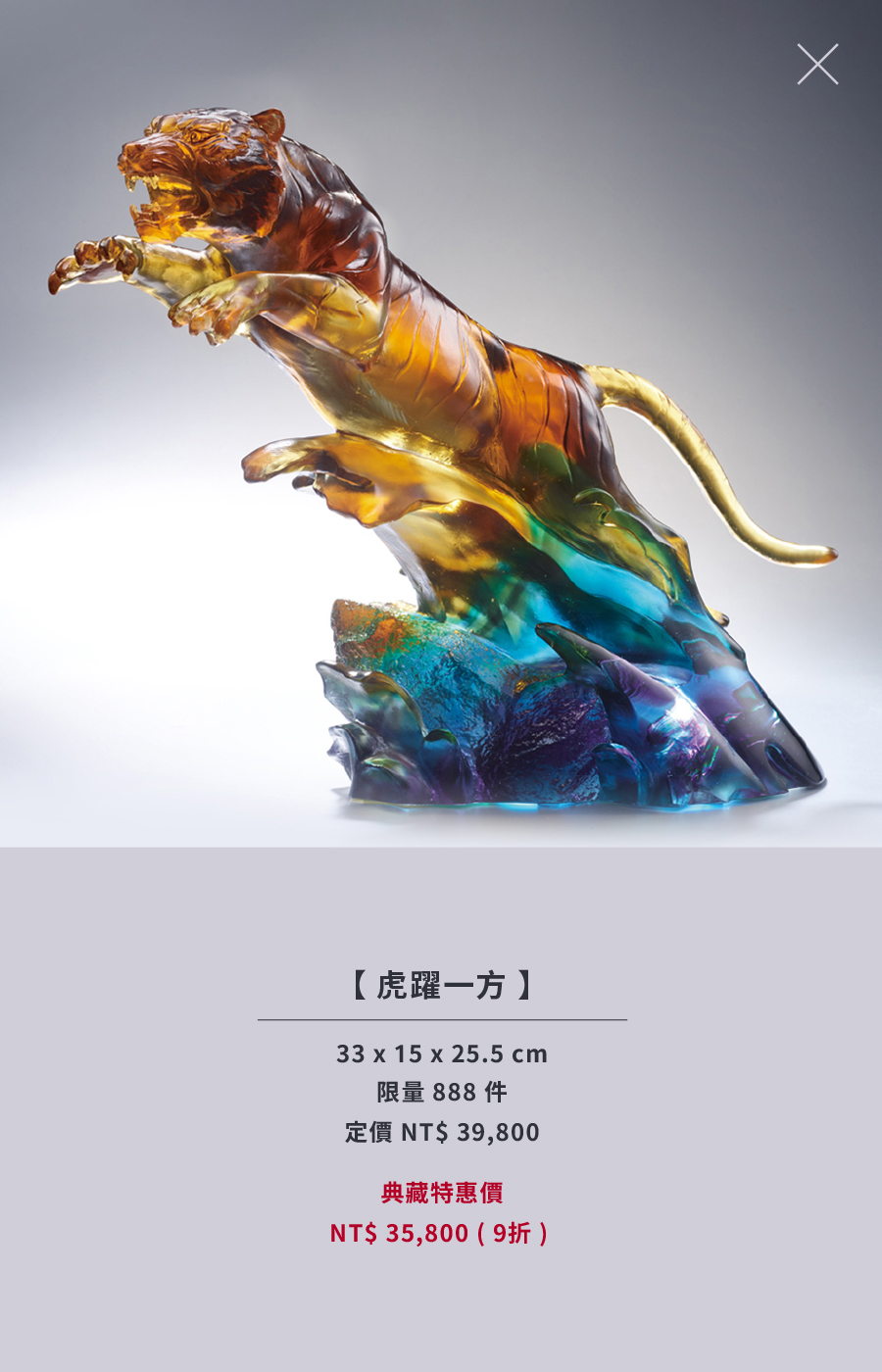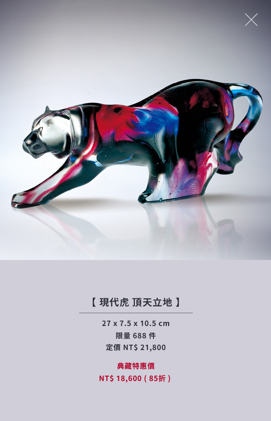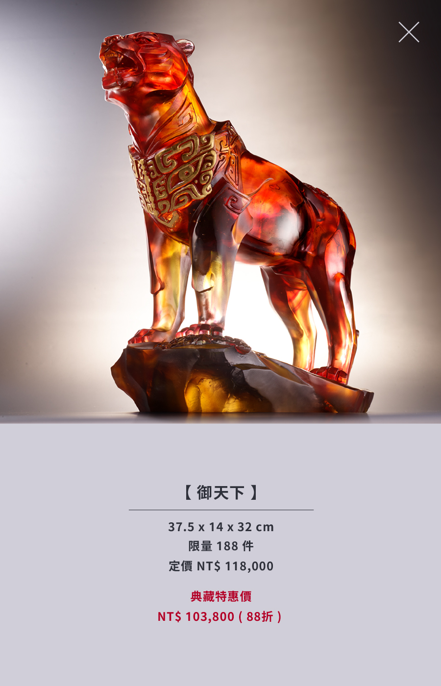 2022年最新的生肖虎創作,tittot琉園以「王者風範」為主題,打造晶透亮的琉璃頂級藝品。為慶祝年中慶,絕對難得的A送B活動,讓您一次典藏最新,和最經典的老虎創作。