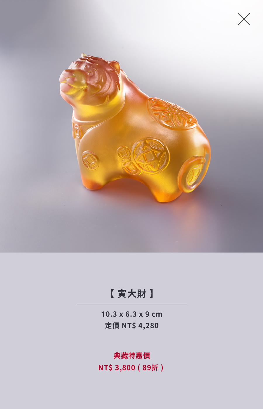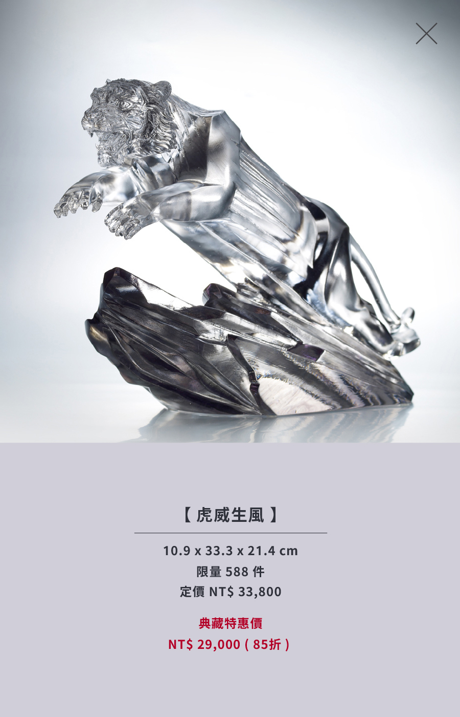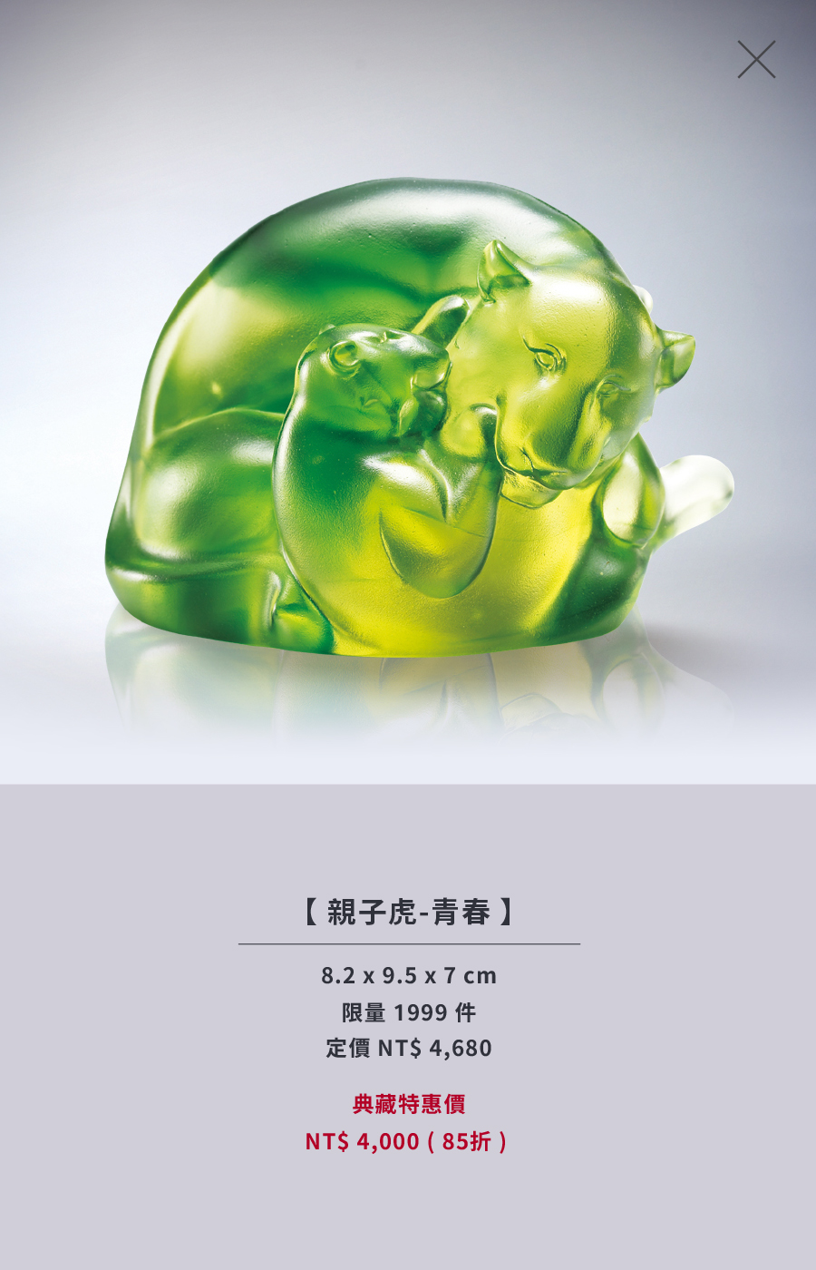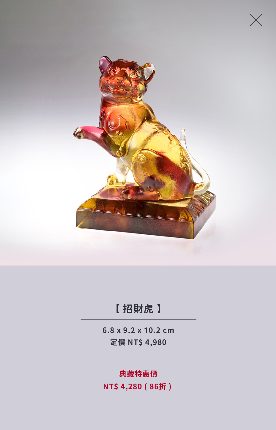 2022年最新的生肖虎創作,tittot琉園以「王者風範」為主題,打造晶透亮的琉璃頂級藝品。為慶祝年中慶,絕對難得的A送B活動,讓您一次典藏最新,和最經典的老虎創作。